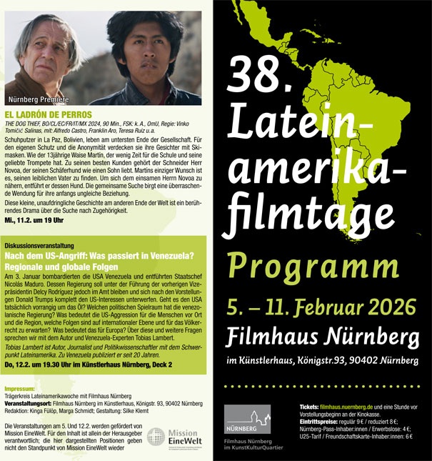 In Kooperation mit dem Filmhaus Nürnberg präsentieren wir 2026 die 38. Lateinamerikafilmtage vor Ort in den Kinos des Filmhauses.